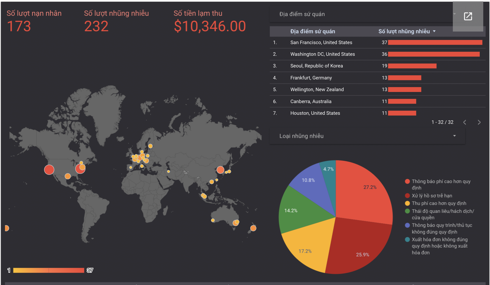 I worked with Thai Duong, a Vietnamese Google engineer, to collect evidence and create a report showing that complaints about corruption happen in almost every Vietnamese Embassy overseas.