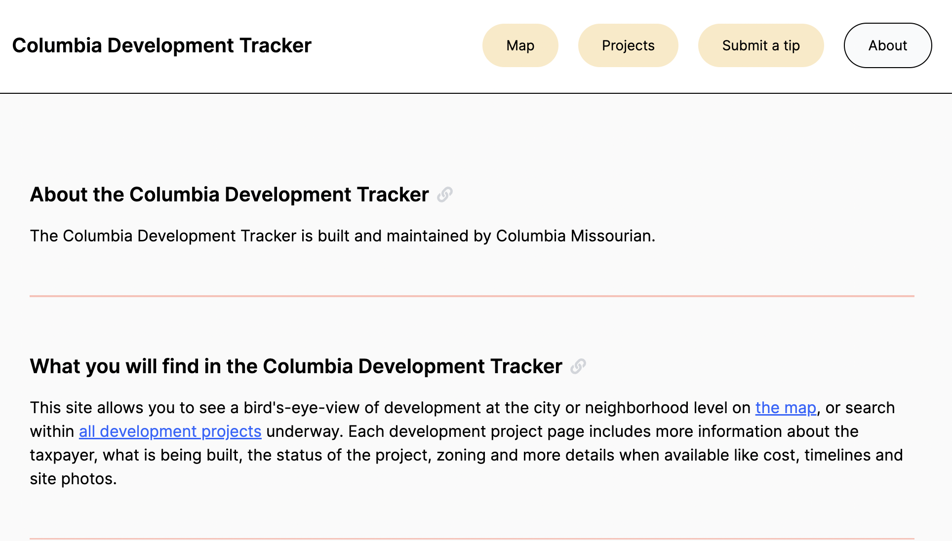 As a personal contribution to public transparency, I volunteered with the Columbia Missourian to deploy this tracker to help the public track real estate development in the city.